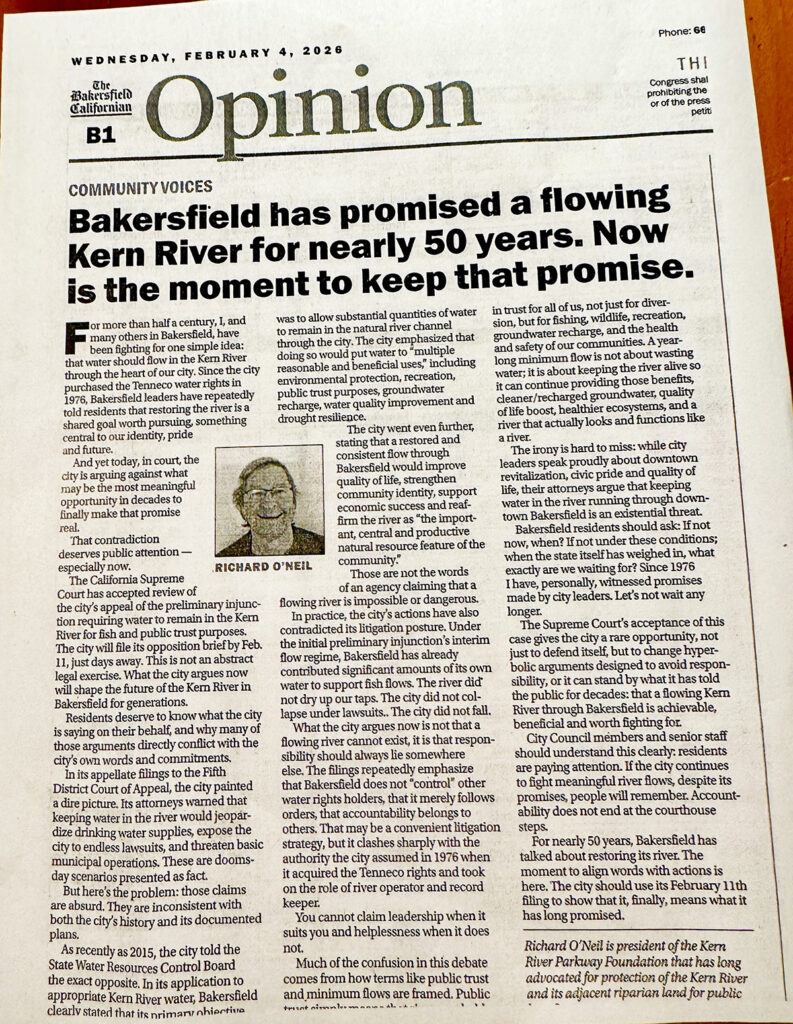The KAS is participating in what is turning out to be a very protracted legal effort to restore the Kern River to its role as a vibrant river that supports ecosystems for plants and animals, along with recreational opportunities for Bakersfield’s residents.