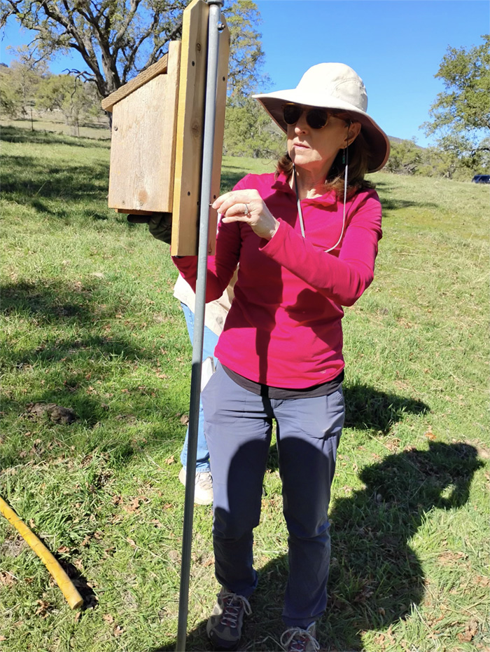Above: Karen Pestana monitoring Western Bluebirds at Indian Hill Ranch. Photo by Linda McDermott.